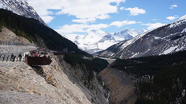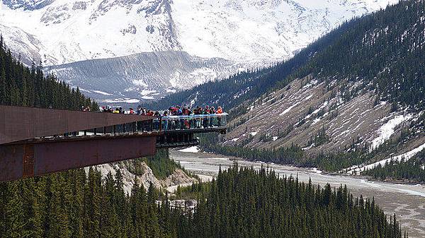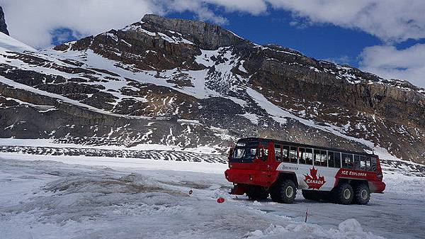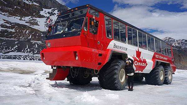 哥倫比亞冰原是本次唯一一個要額外花錢的行程,在這無論使用哪種交通工具來,都必需在售票中心改換他們的交通車,基本票包含冰原雪車與天空步道,其他還有套票搭配別的景點。上冰原時間限制比較多,下來改去天空步道後則隨意參觀,紅騎士攝影師不是幹假的,我們在天空步道也可以玩半小時實在令人佩服。其餘有關冰原的介紹可參訪它的官網或別人的遊記。回到中心已過3點,還未吃午餐,紅騎士與美友人沒有帶食物,所以在中心的小店裡買了貴鬆鬆的漢堡(好像10來塊),而我則在上冰原前把泡麵丟進食物罐內等待隨時放飯,雖然開飯時麵已泡爛,但能在冷颼颼的天氣裡吃上一碗熱騰騰的泡麵,可說是人間美味。