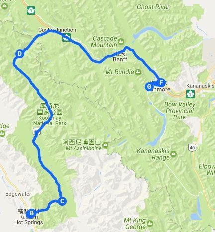 Day 5. Radium Hot Springs(93)->Castle Junction(1)->Canmore;160km