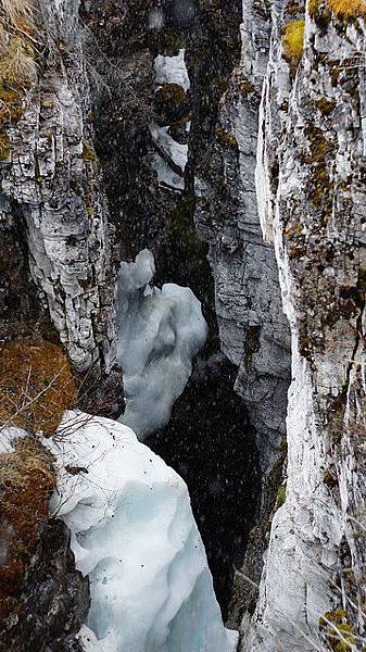 Marble Canyon值得停車下來走一趟,也許也是季節剛好,有冰有雪有霧氣,1.6Km步道走1個多小時,每個轉角都停下來拍照,最後的瀑布給了最好的ending,步道有分左右側每隔一段有橋銜接,我們S型去就由另外的S型回。雖然前一天錯過Giant Cedars Boardwalk Trail的雪松神木群步道有點可惜(在照片的印象裡與拉拉山神木群有點像,樹種不同),在Marble Canyon補足了遺憾。
