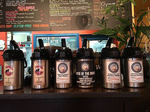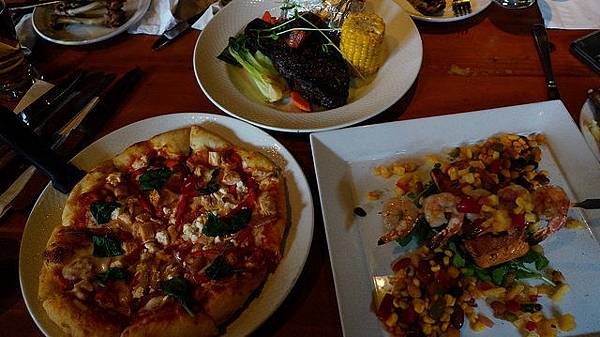 外送抵達時主人也剛好到來,一同用過下午餐後,一台汽車前往加拿大草莓店逛街(Canadian Tire),美國友人見怪不怪,但對於我們這種地狹人稠的地區長大的孩子來說,像這種大賣場簡直就是天堂,好多東西都很想要,可是行李箱有限通通都不能買,只好看看逛逛去喝咖啡較實際。早上應該是精神太緊繃,上車吹暖氣讓人直直想睡,咖啡結束再去兩個景點拍照、賞野生動物,又進餐廳祭五臟廟,這餐堪稱本次行程中最豪華晚餐(明晚不算,見下集分曉),加拿大本土牛肉、Pizza、蘋果酒都是我的最愛。